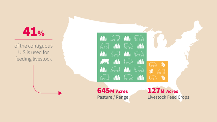 美国就有1.274亿英亩土地被用来生产动物饲料作物,其中土壤质量逐渐被耗尽。如果我们把动物的土地上回来?难道草和大型动物的这些传统的草原恢复提供不牺牲生产效率显著的气候好处?