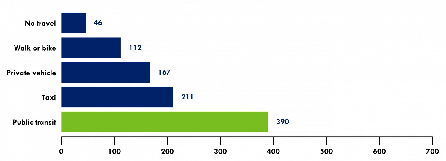 但净效果是高度区域相关的。人口密集的城市市场,从郊区的反应有所不同。在旧金山,充分Lyft和超级车手的三分之一使用叫车服务代替公共交通。丹佛的调查(PDF)调查发现,如果没有叫车服务,22%的受访者会选择乘坐公交。相比之下,研究人员发现,在奥斯汀,只有3%的Lyft和优步乘客改乘公交在网约车服务暂停期间。