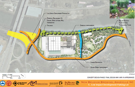 在北卡罗来纳州阿什维尔正在建设的新啤酒厂,新比利时计划实施一系列创新功能,以减少废水浪费和控制污染。他们正在用人工湿地加固其18英亩河岸场地的周边,这将有助于吸收和过滤雨水,防止雨水流入酿酒厂前方的法国宽河。雨水可以将道路、停车场和屋顶的污染带入河流、湖泊和溪流。这些雨水实际上是该国最大的水污染源之一。湿地通过在雨水落下的地方收集雨水,并在雨水到达河流之前对其进行过滤,提供了至关重要的洪水和污染控制。