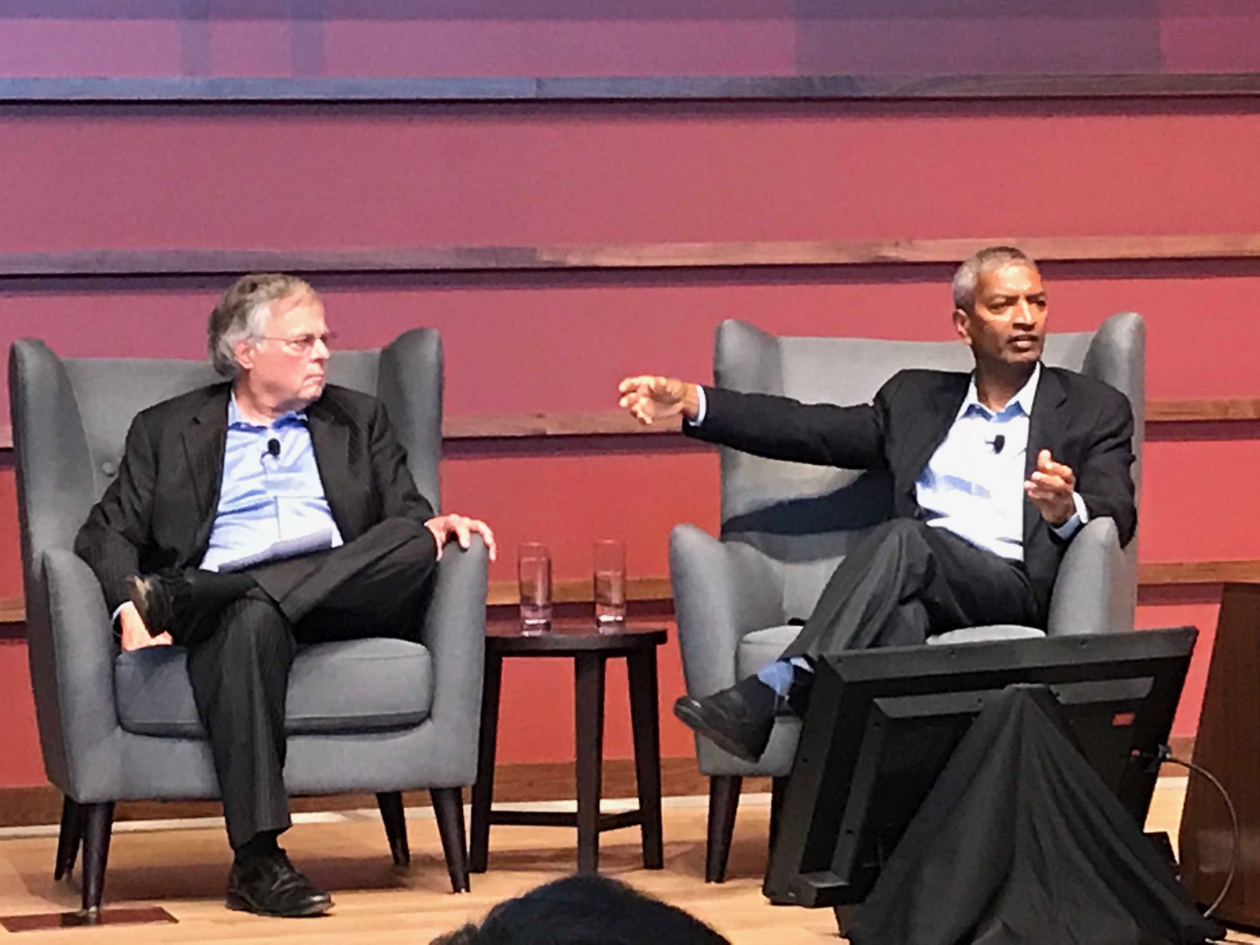 SunPower创始人Dick Swanson和Bloom Energy创始人KR Sridhar在斯坦福大学全球能源论坛上